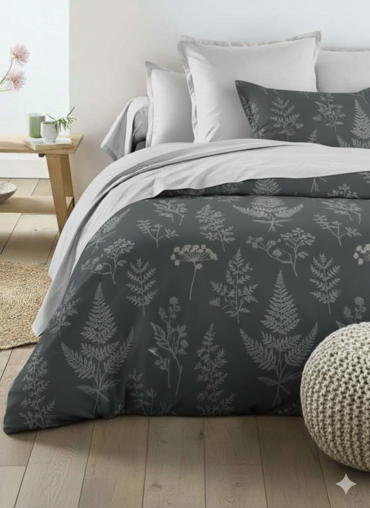 Frissítsd fel a hálószoba hangulatát ezzel a modern, sötétszürke ágyneműhuzattal, amelyet finom, botanikus minták díszítenek. Letisztult, elegáns megjelenése könnyedén illeszkedik bármilyen enteriőrbe, miközben természetközeli atmoszférát teremt.