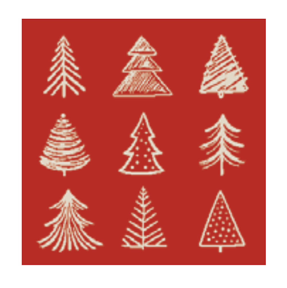 A karácsonyi minták – fenyőágak és stilizált karácsonyfák – ünnepi hangulatot varázsolnak a konyhába.