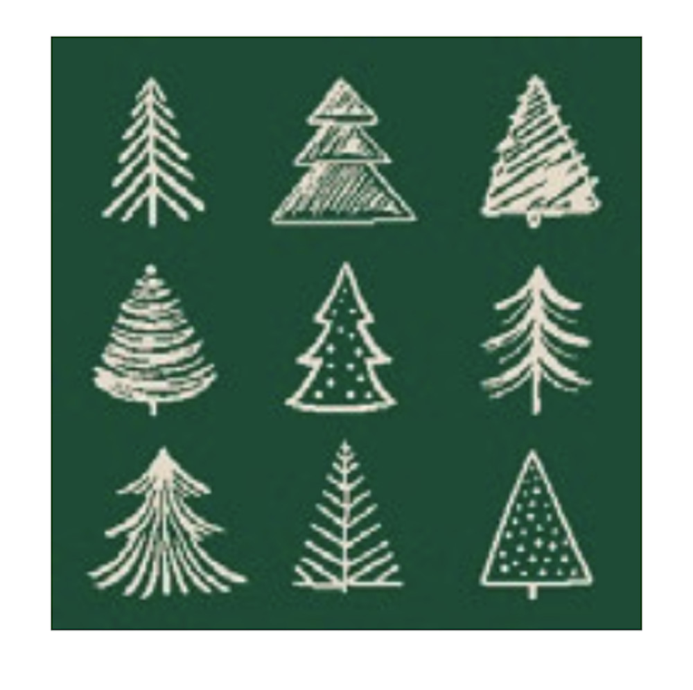 A karácsonyi minták – fenyőágak és stilizált karácsonyfák – ünnepi hangulatot varázsolnak a konyhába.