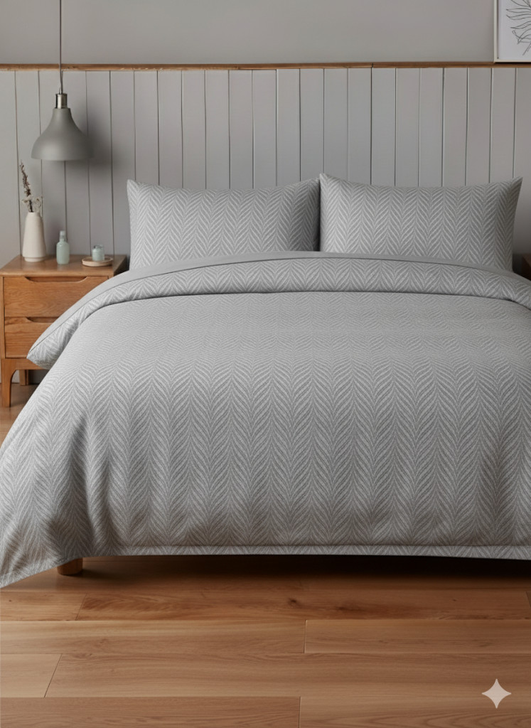 A jacquard szövés apró halszálka-mintája épp annyira látványos, hogy különlegessé tegye az ágyadat, mégis elég visszafogott ahhoz, hogy bármilyen stílusú térben megteremtse a harmóniát. Ahogy végigsimítod, az anyag puhasága és természetes melegsége rögtön megnyugtat.