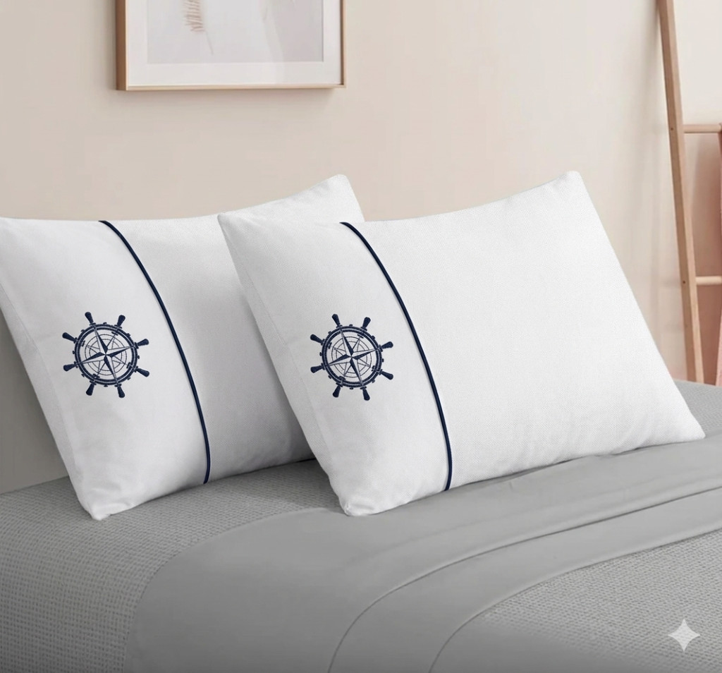 Hímzett Marine Szatén Nagypárnahuzat Fehér