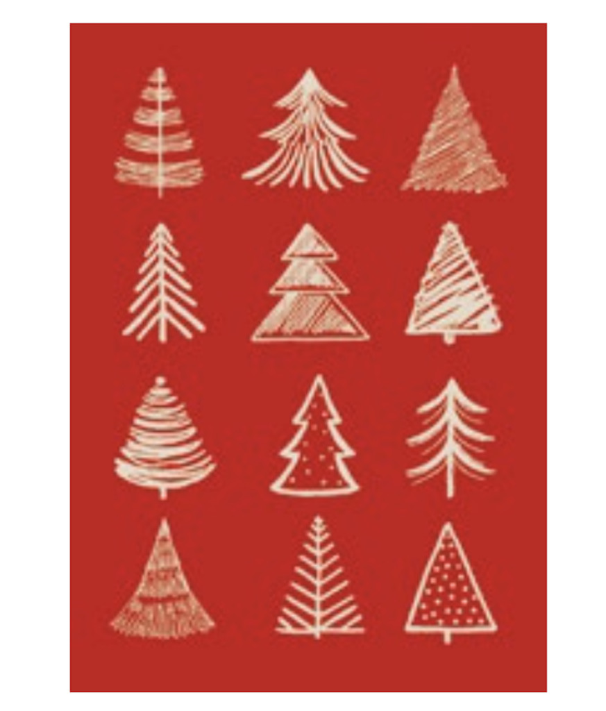 Négy különböző mintájú konyharuha közül választhatunk : fenyőfa, kockás, „Merry Christmas” felirat, valamint szarvas és erdei táj motívum – mindez elegáns piros és krémszín árnyalatokban.